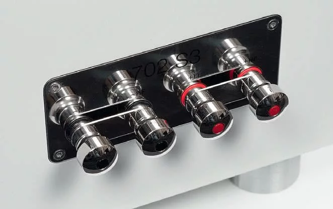 La nueva gama de la Serie 700 presenta terminales de altavoz mejorados que cuentan con conexiones de contacto más sustanciales y están mejor diseñadas para su uso con cables de altavoz con terminación en horquilla. Estos alimentan filtros de cruce cuidadosamente mejorados que continúan utilizando condensadores Mundorf como antes, mejorados con múltiples condensadores de derivación y disipadores de calor mejorados para un rendimiento aún más limpio.