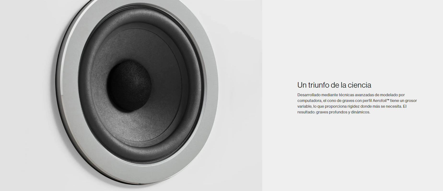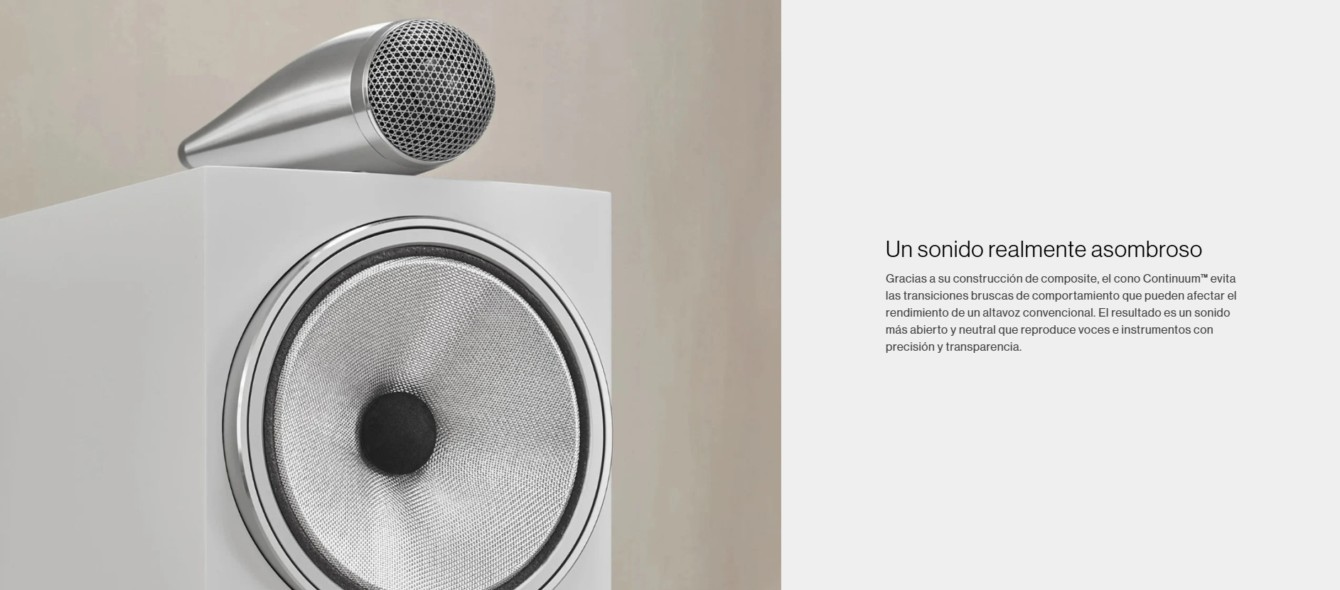 Gracias a su construcción de composite, el cono Continuum™ evita las transiciones bruscas de comportamiento que pueden afectar el rendimiento de un altavoz convencional. El resultado es un sonido más abierto y neutral que reproduce voces e instrumentos con precisión y transparencia.