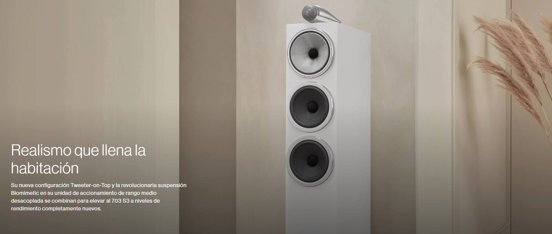 Su nueva configuración Tweeter-on-Top y la revolucionaria suspensión Biomimetic en su unidad de accionamiento de rango medio desacoplada se combinan para elevar al 703 S3 a niveles de rendimiento completamente nuevos.