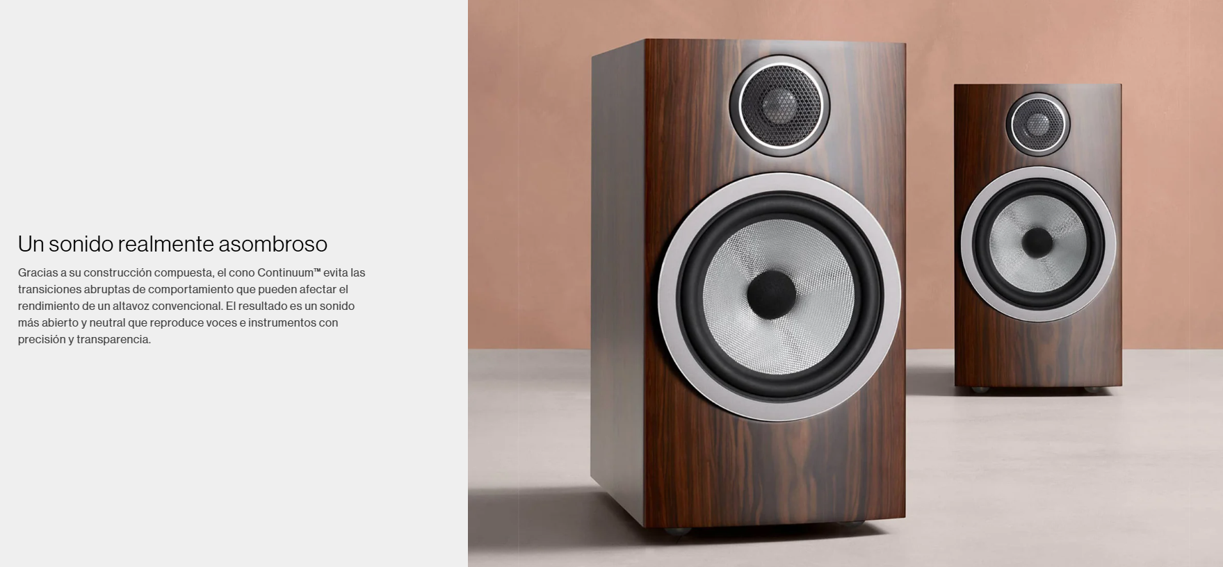 Gracias a su construcción compuesta, el cono Continuum™ evita las transiciones abruptas de comportamiento que pueden afectar el rendimiento de un altavoz convencional. El resultado es un sonido más abierto y neutral que reproduce voces e instrumentos con precisión y transparencia.